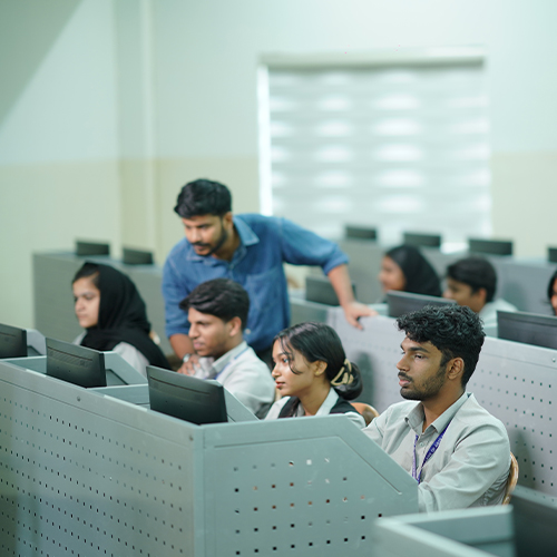 The Computer Laboratory is equipped with 60 high-performance systems, the latest software, and high-speed internet connectivity. It provides students with hands-on experience in modern computing technologies, programming, data analysis, and research tools, ensuring they stay aligned with current industry and academic trends. The Language Lab offers an interactive, technology-enabled space that enhances students’ proficiency in listening, speaking, reading, and pronunciation skills through digital learning tools.